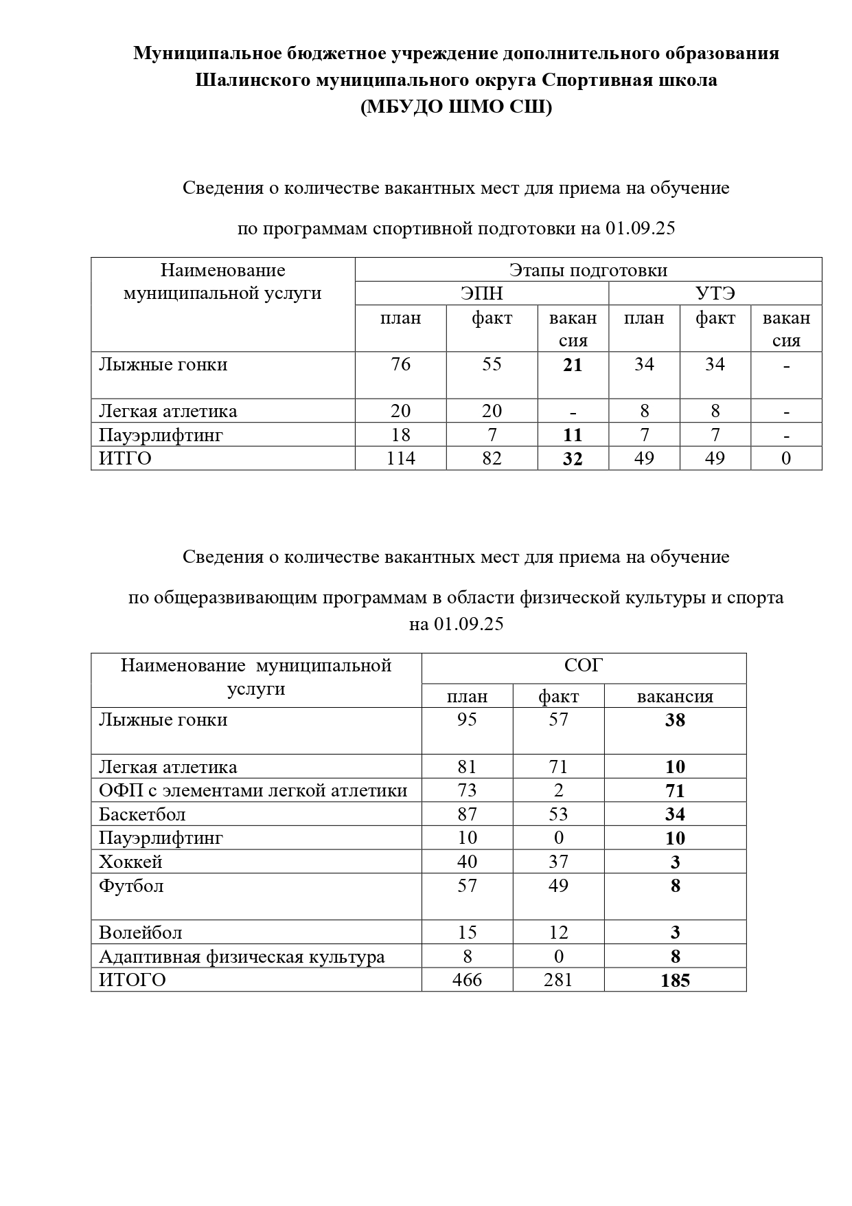 ВАКАНТНЫЕ МЕСТА ДЛЯ ПРИЕМА (ПЕРЕВОДА)