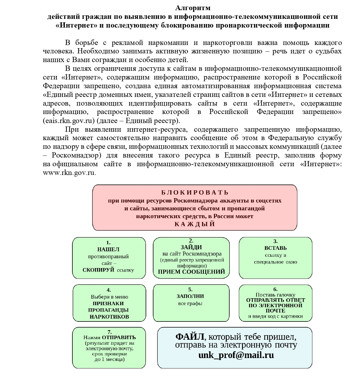 Алгоритм действий граждан по выявлению пронаркотической информации