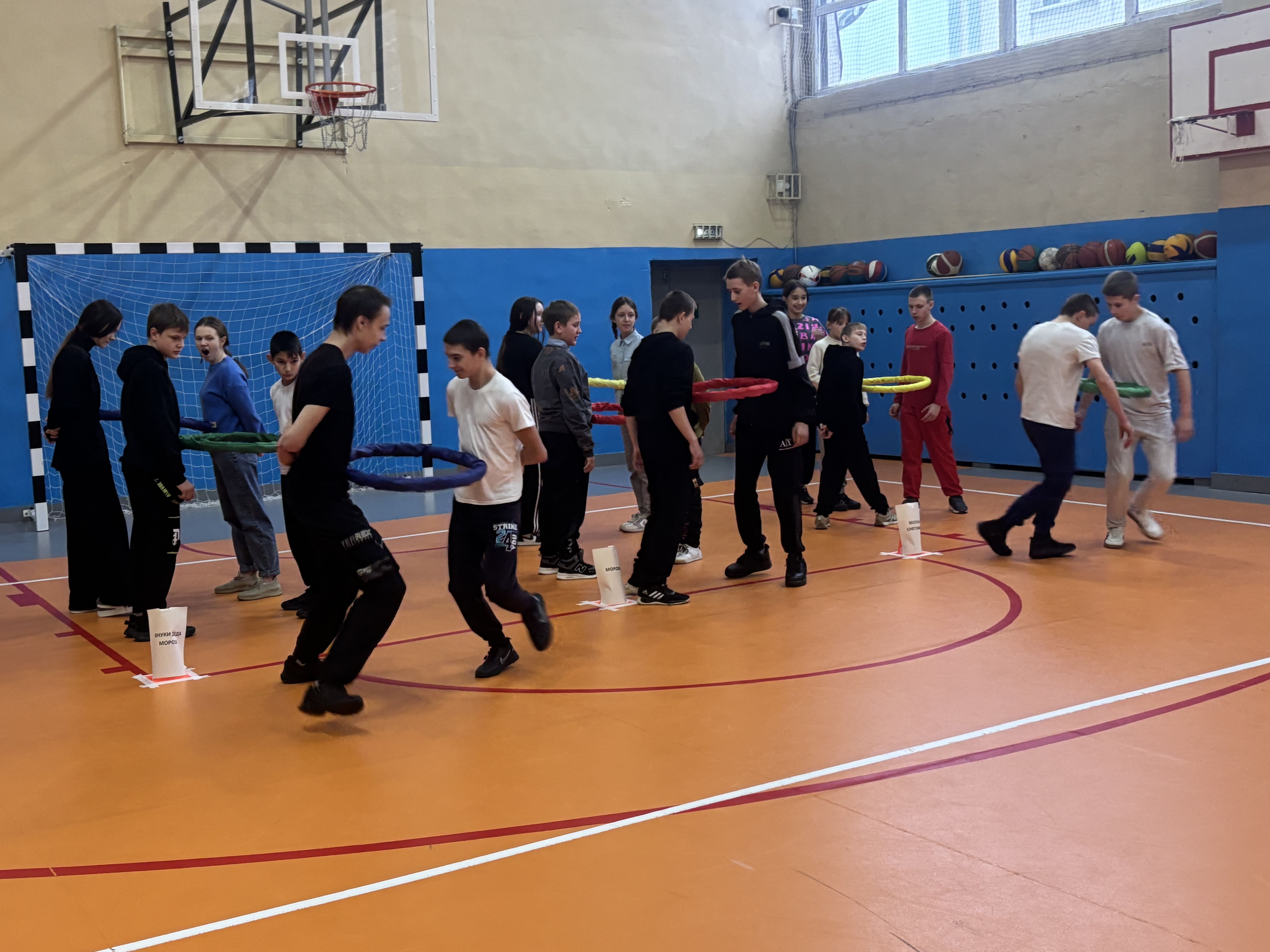 Программа соревнований прошла в виде эстафет, таких как: «Забег дедов Морозов», «Выложи елочку», «Переправа на льдине», «Забрось снежок», «Снежный тоннель» и других. Эстафеты выполнялись на время, по итогам каждой них определялось место команды.